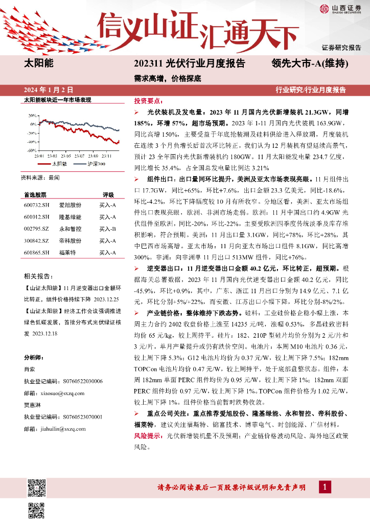 山西证券:202311光伏行业月度报告:需求高增,价格探底.pdf