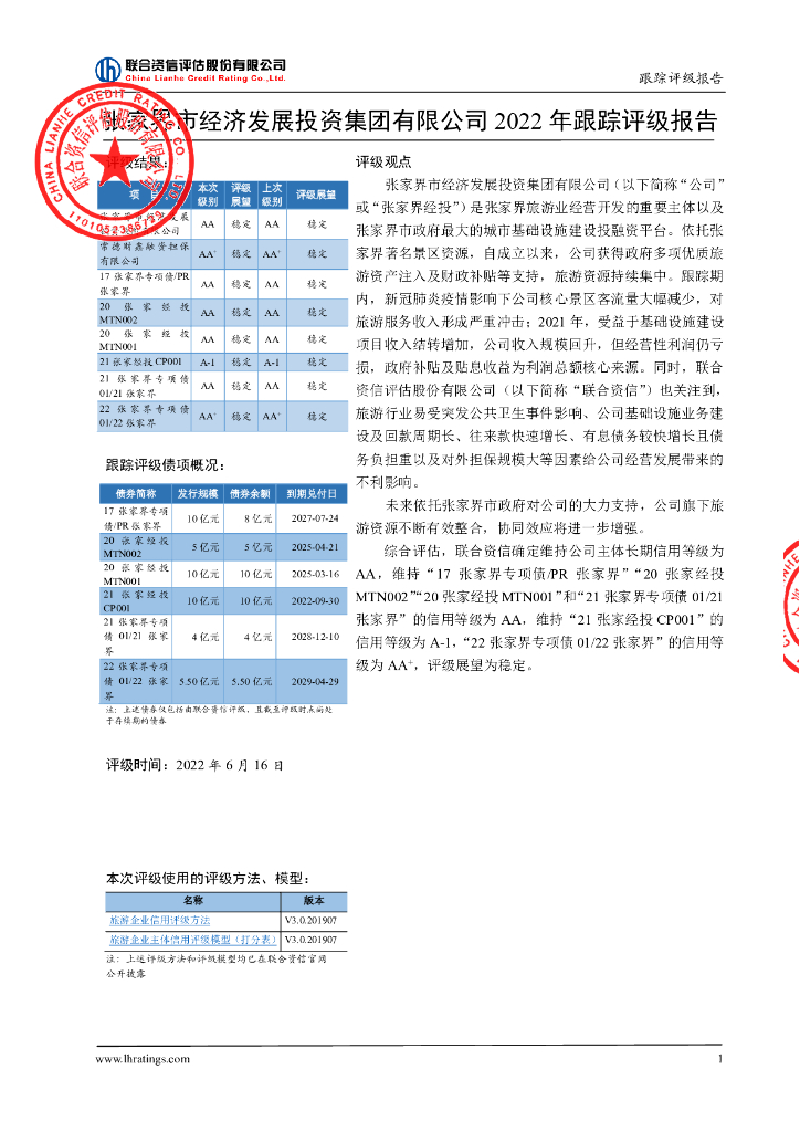 联合资信:张家界市经济发展投资集团有限公司2022年跟踪评级报告.pdf