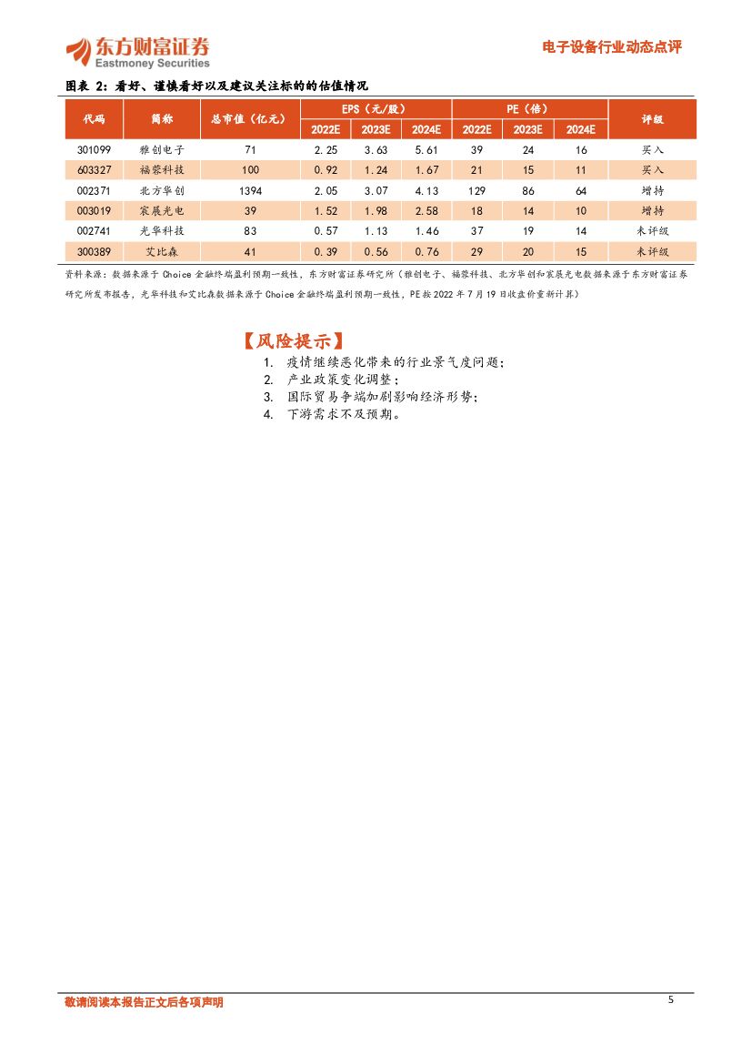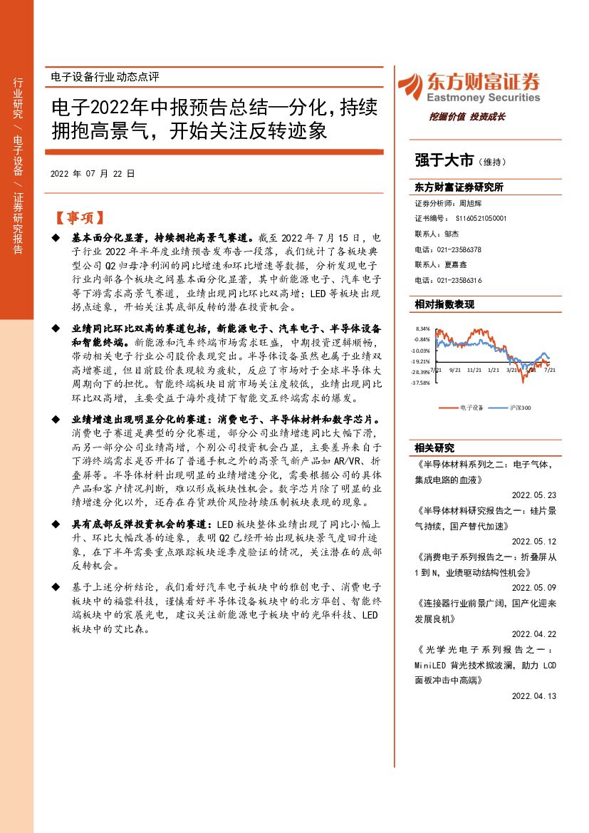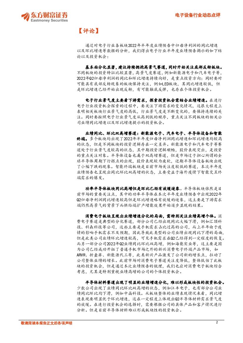 东方财富证券:电子设备行业动态点评:电子2022年中报预告总结—分化,持续拥抱高景气,开始关注反转迹象.pdf
