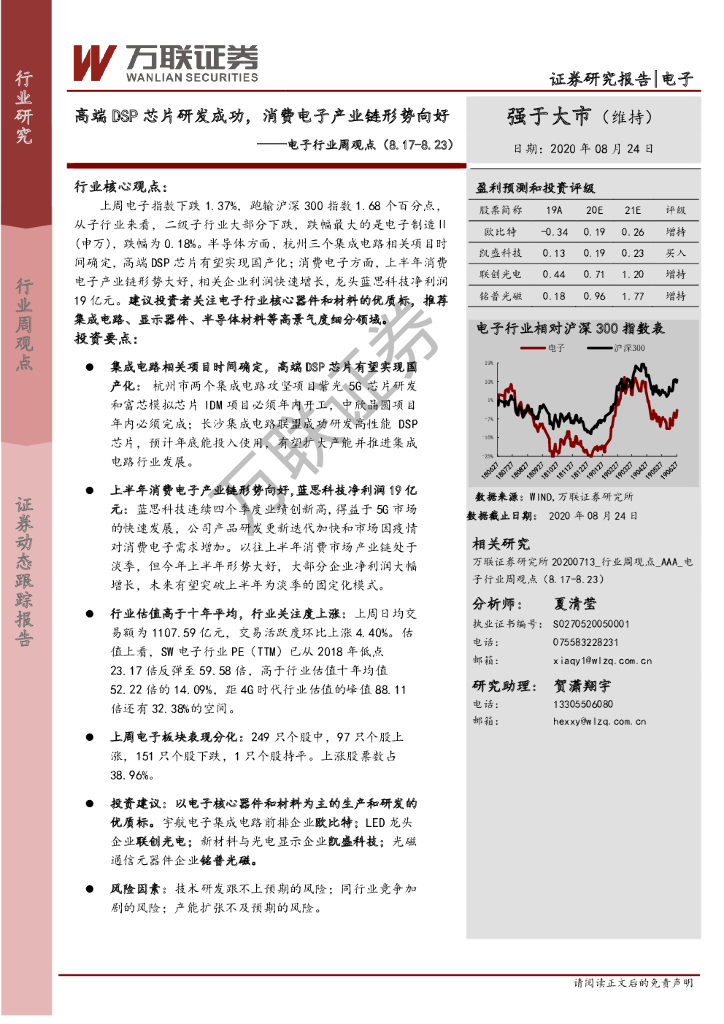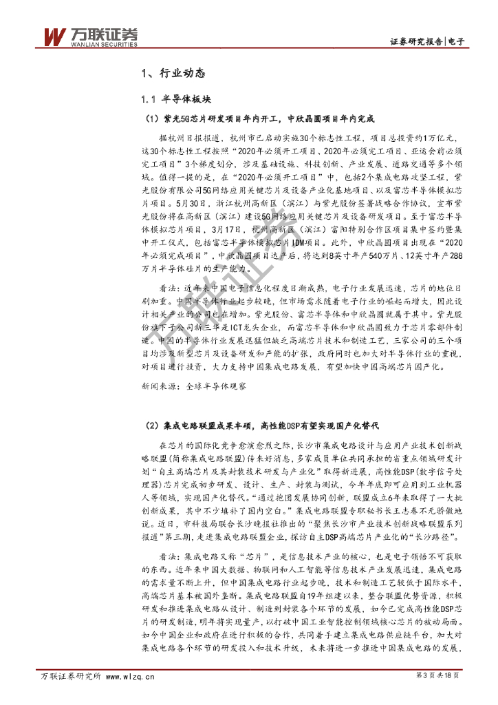 万联证券:电子行业周观点:高端DSP芯片研发成功,消费电子产业链形势向好.pdf