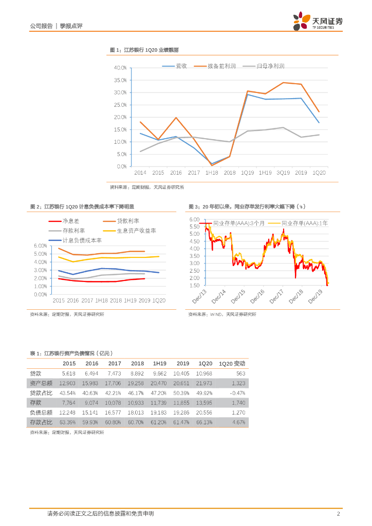 天风证券:江苏银行(600919)-1Q20:疫情冲击有限,盈利较快增长.pdf