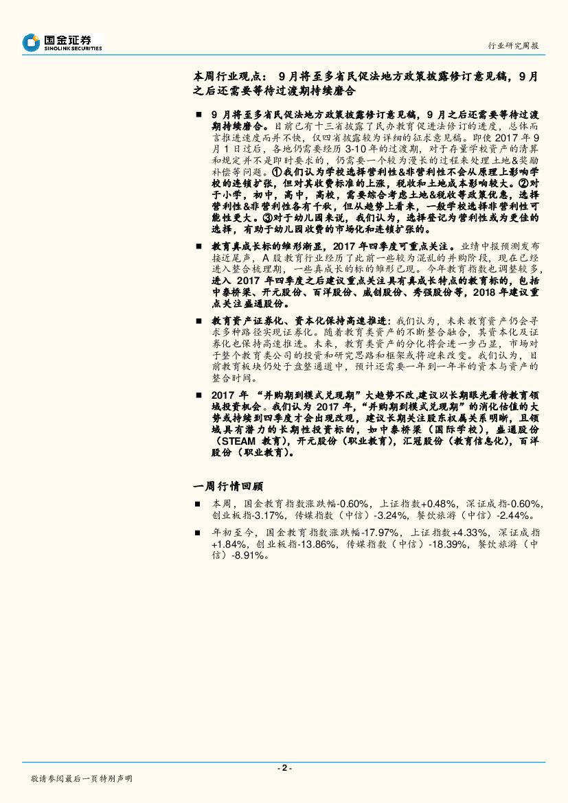 国金证券:教育行业周报第24期:9月将至多省民促法地方政策披露修订意见稿,9月之后还需要等待过渡期持续磨合.pdf