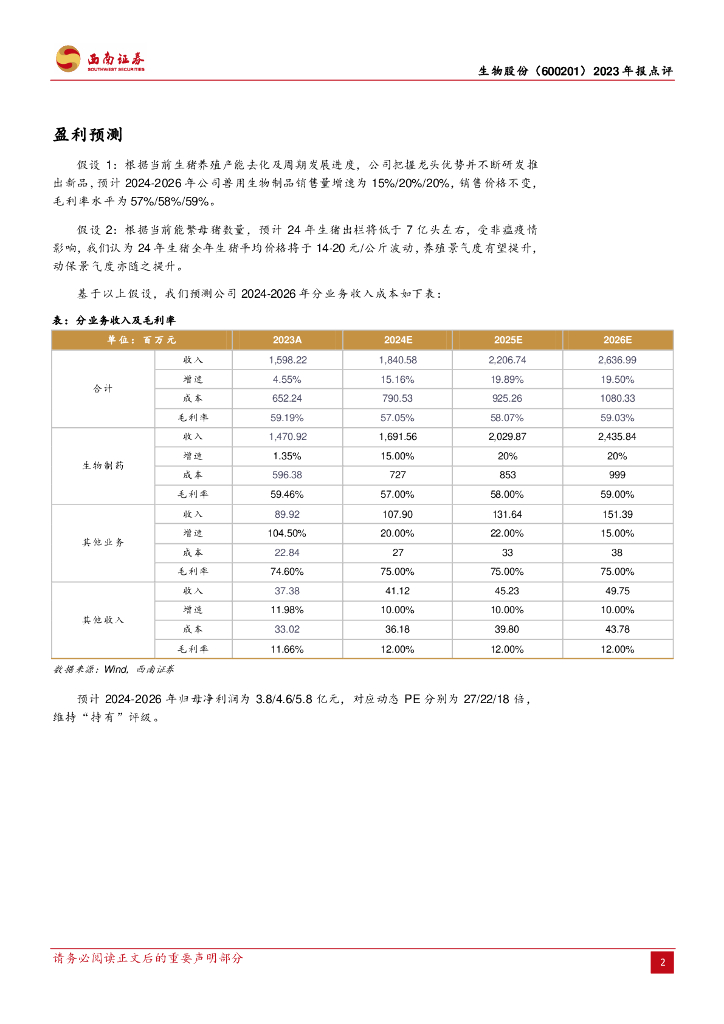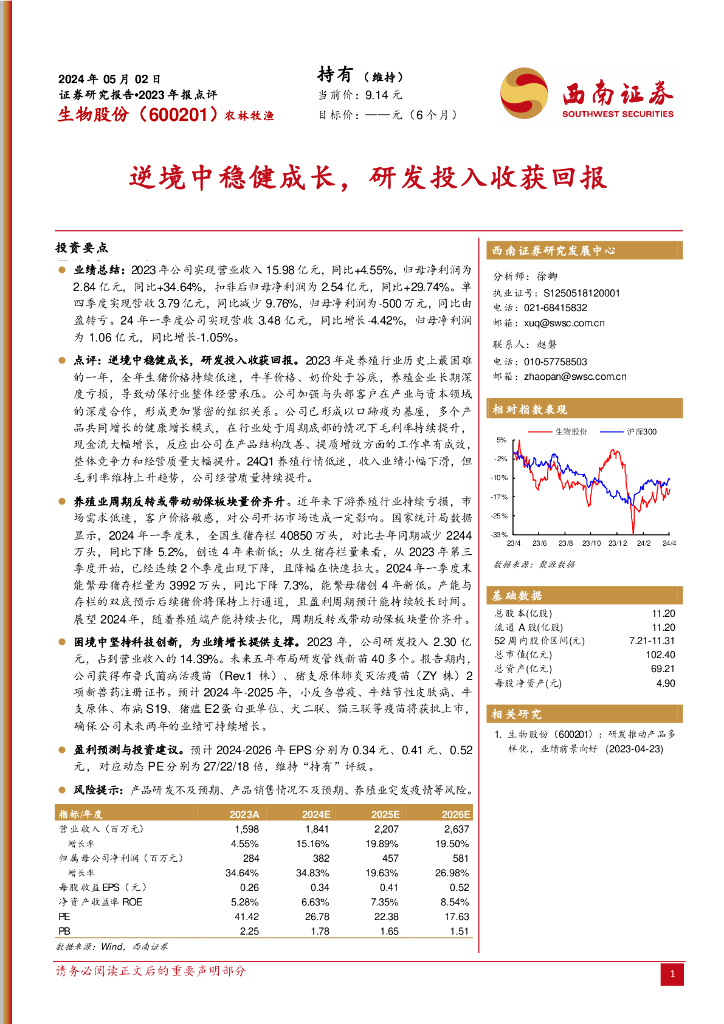 西南证券:生物股份(600201)-2023年报点评:逆境中稳健成长,研发投入收获回报.pdf