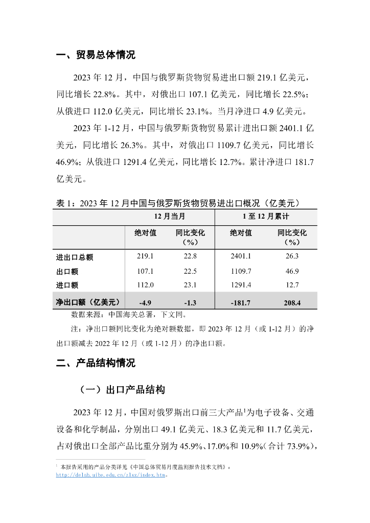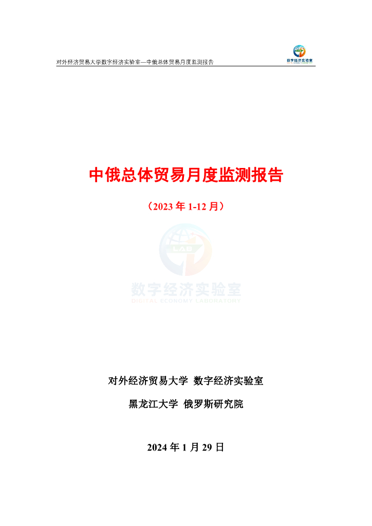 对外经济贸易大学:中俄总体贸易月度监测报告(2023年1-12月).pdf