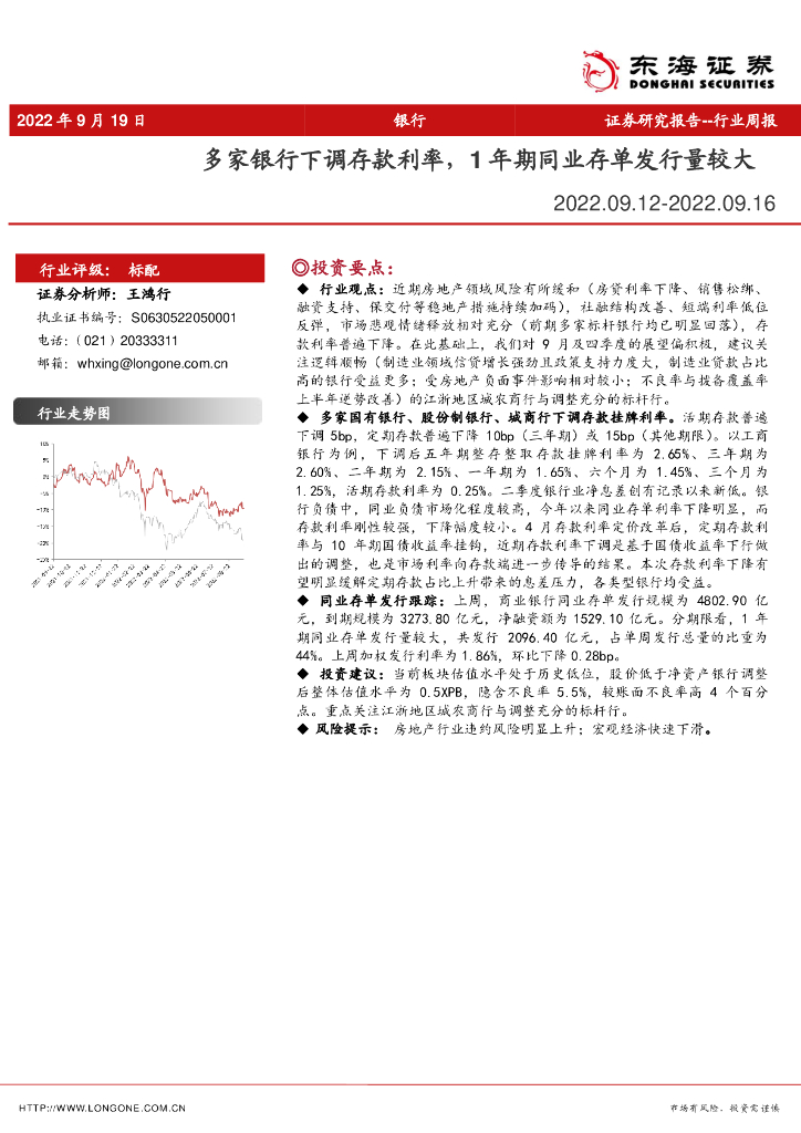 东海证券:银行行业周报:多家银行下调存款利率,1年期同业存单发行量较大.pdf