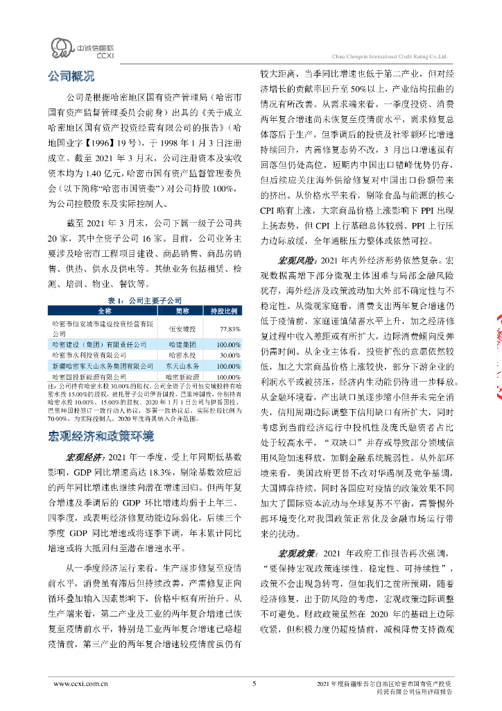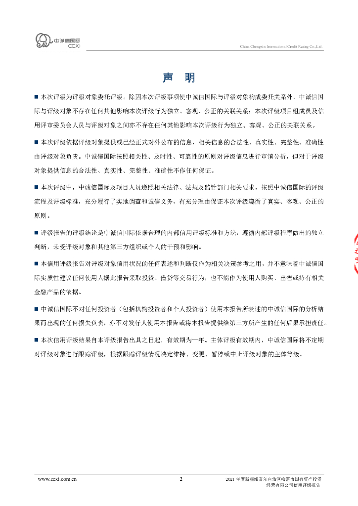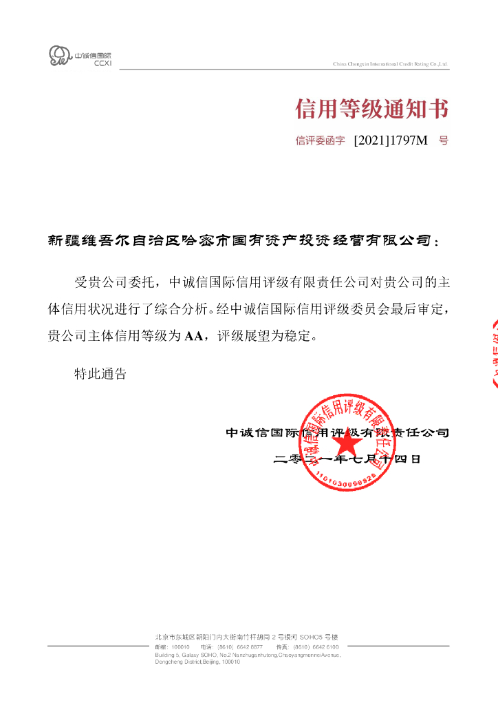 中诚信:新疆维吾尔自治区哈密市国有资产投资经营有限公司2021年度信用评级报告.pdf