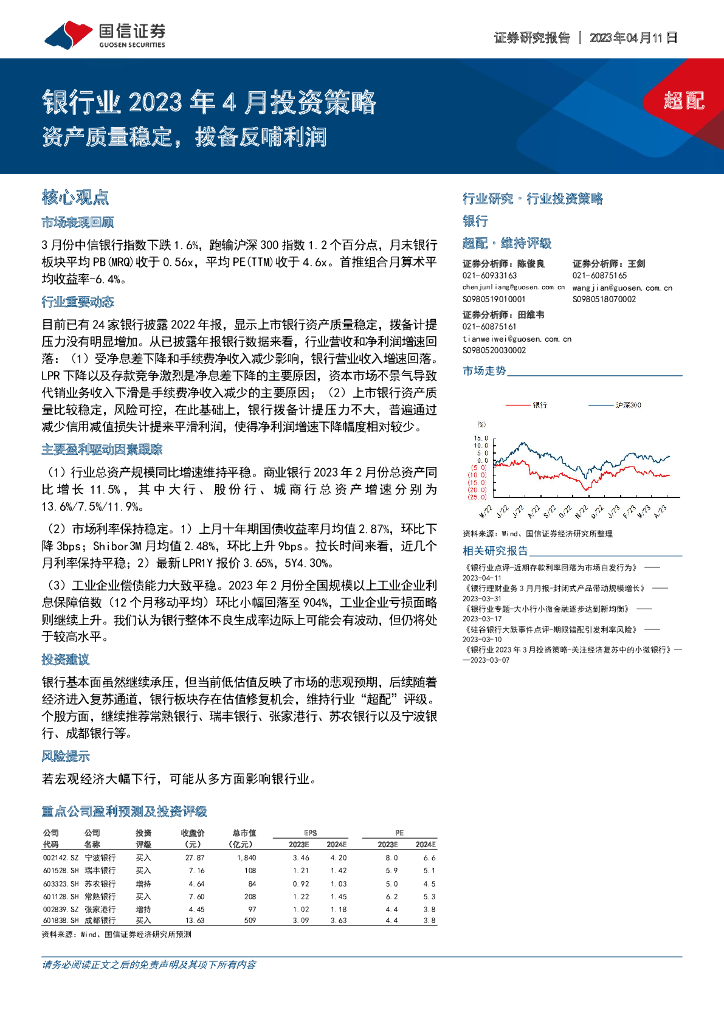 国信证券:银行业2023年4月投资策略:资产质量稳定,拨备反哺利润.pdf