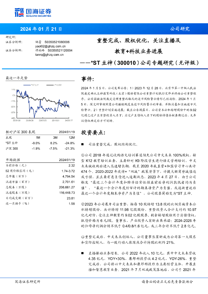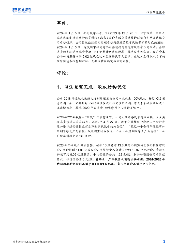 国海证券:*ST豆神(300010)-公司专题研究(无评级):重整完成、股权优化,关注直播及教育+科技业务进展.pdf