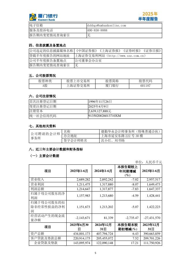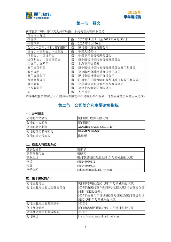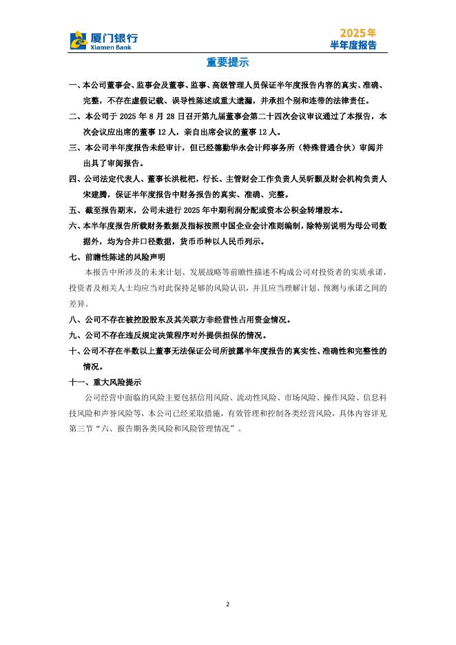 601187-厦门银行:厦门银行股份有限公司2025年半年度报告.pdf