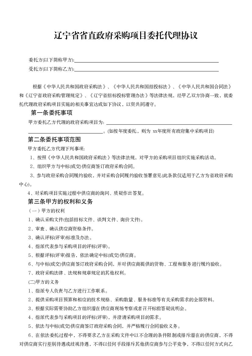 LF-2006-1001 辽宁省省直政府采购项目委托代理协议(示范文本).pdf