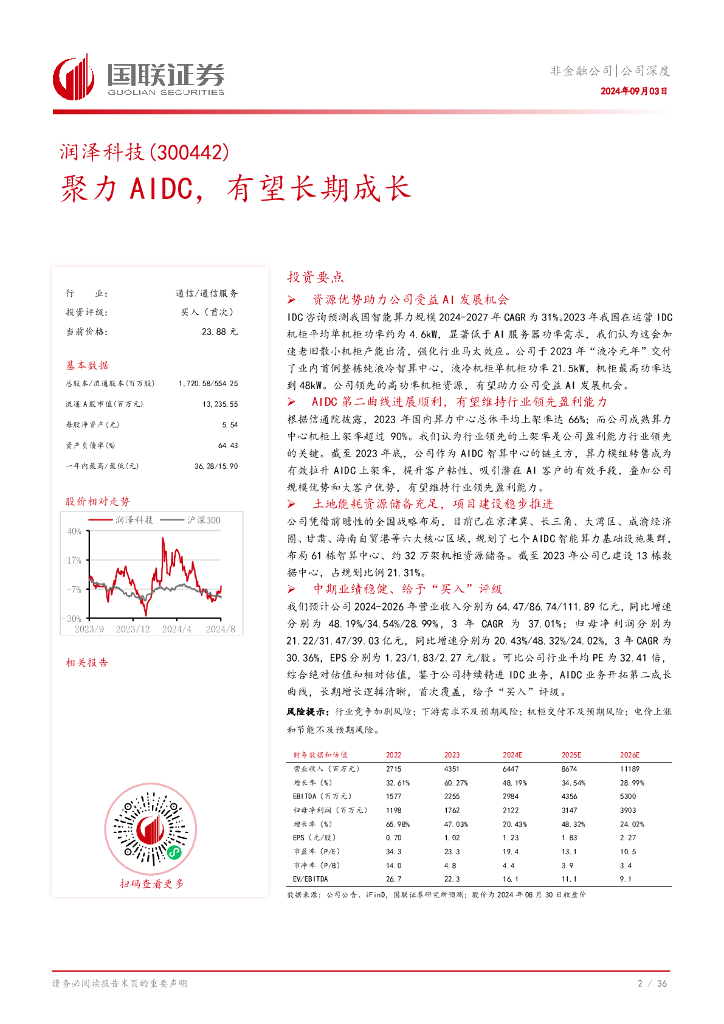 国联证券:润泽科技(300442)-聚力AIDC,有望长期成长.pdf
