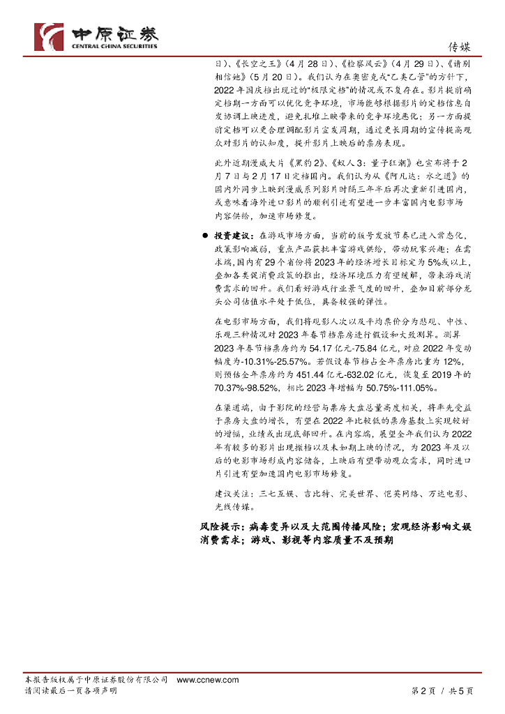 中原证券:传媒行业点评报告:近期文娱市场跟踪:文娱市场供给有序恢复,2023恢复可期.pdf