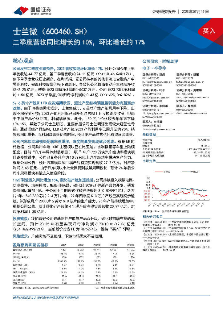 国信证券:士兰微(600460)-二季度营收同比增长约10%,环比增长约17%.pdf