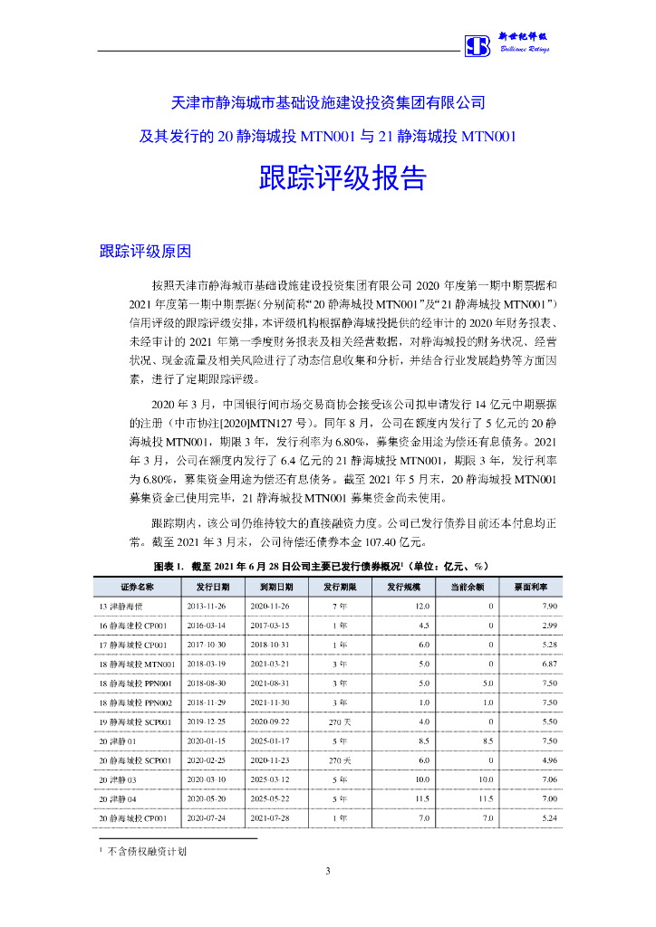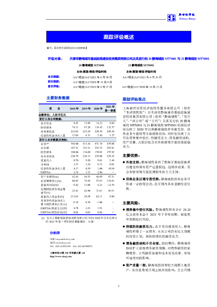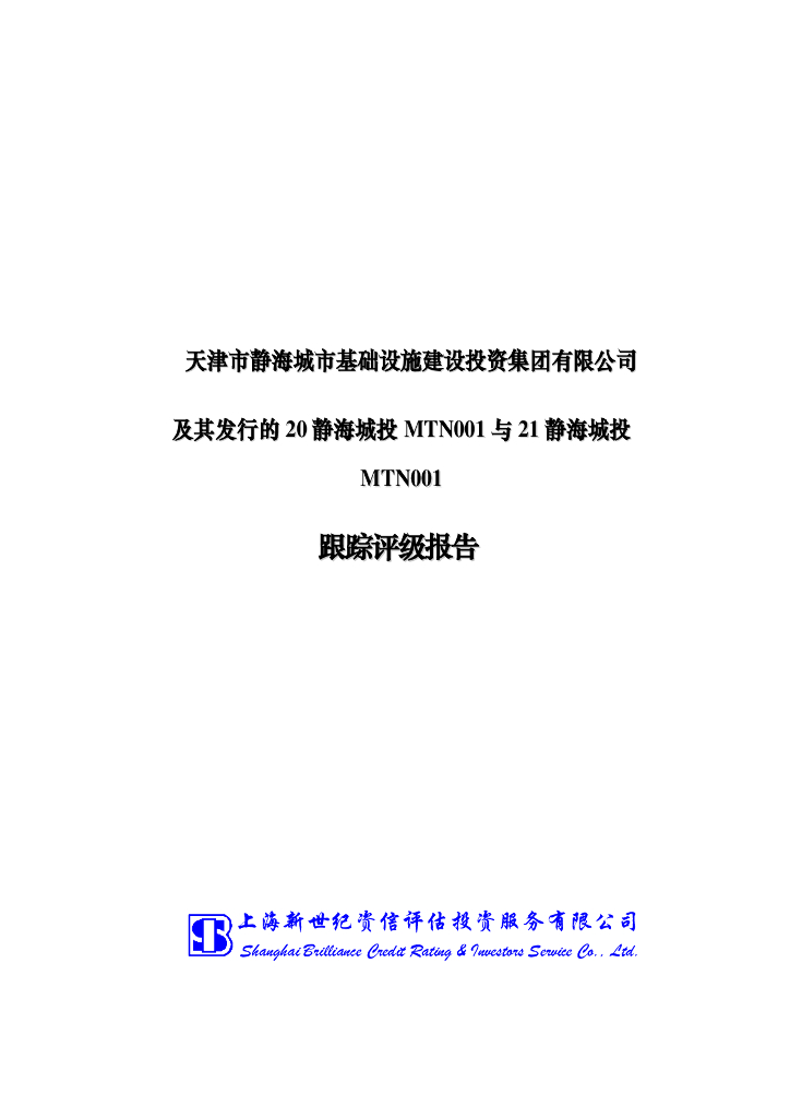 新世纪:天津市静海城市基础设施建设投资集团有限公司及其发行的20静海城投MTN001与21静海城投MTN001跟踪评级报告.pdf