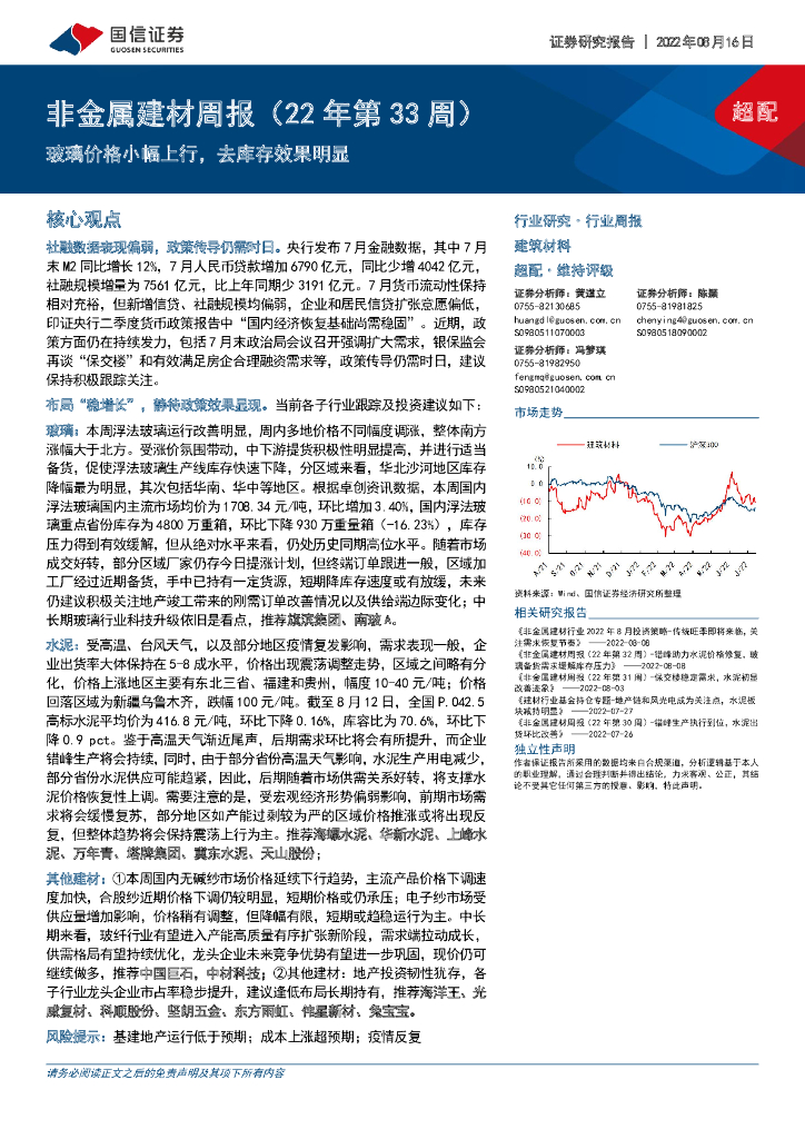 国信证券:非金属建材周报(22年第33周):玻璃价格小幅上行,去库存效果明显.pdf