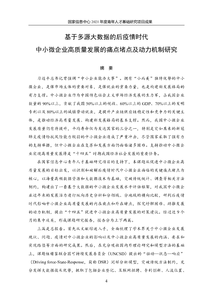 国家信息中心:基于多源大数据的后疫情时代中小微企业高质量发展的痛点堵点及动力机制分析.pdf