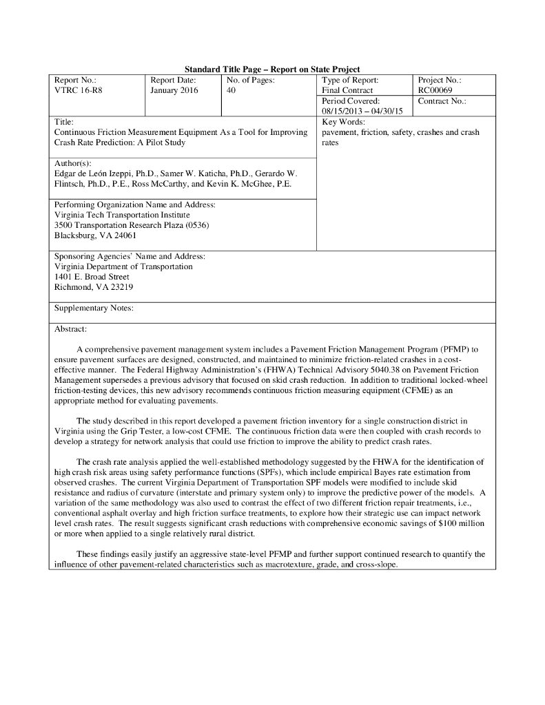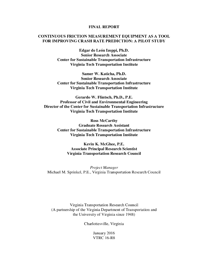 VTTI:2016年连续摩擦测量设备作为改进碰撞率预测的工具:试点研究报告(英文版).pdf