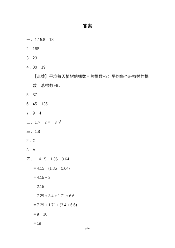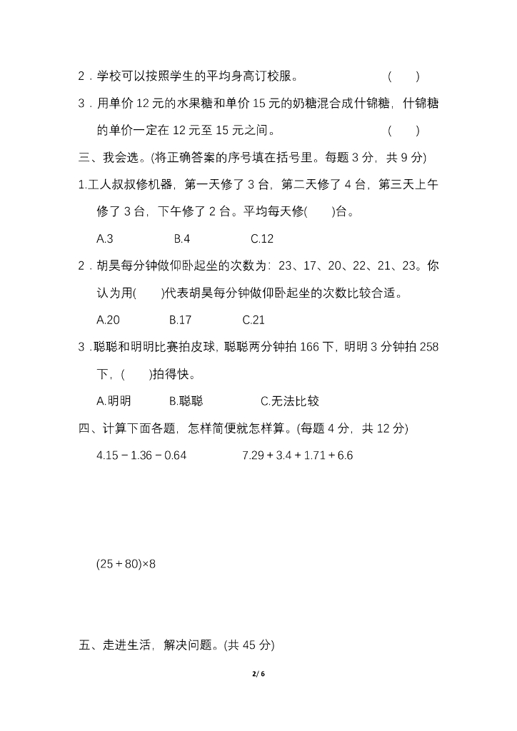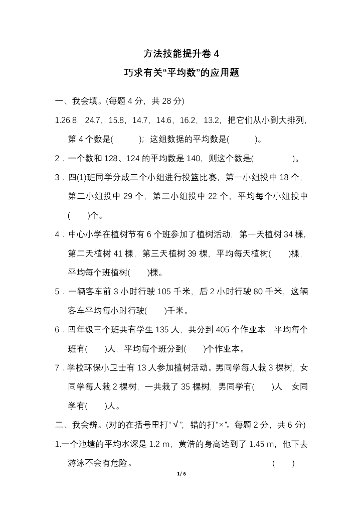 人教四(下)期末冲刺卷4 巧求有关“平均数”的应用题.pdf