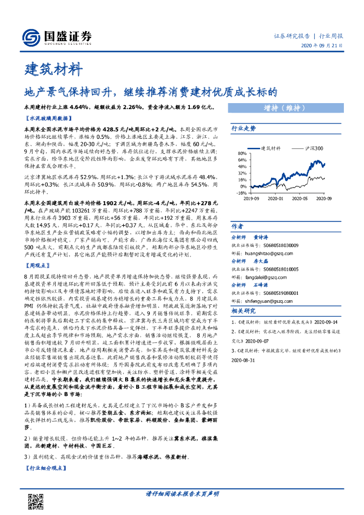 国盛证券:建筑材料行业周报:地产景气保持回升,继续推荐消费建材优质成长标的.pdf