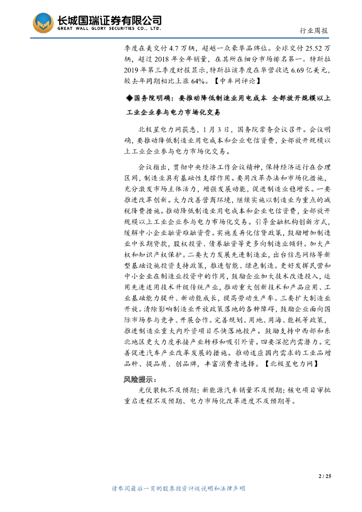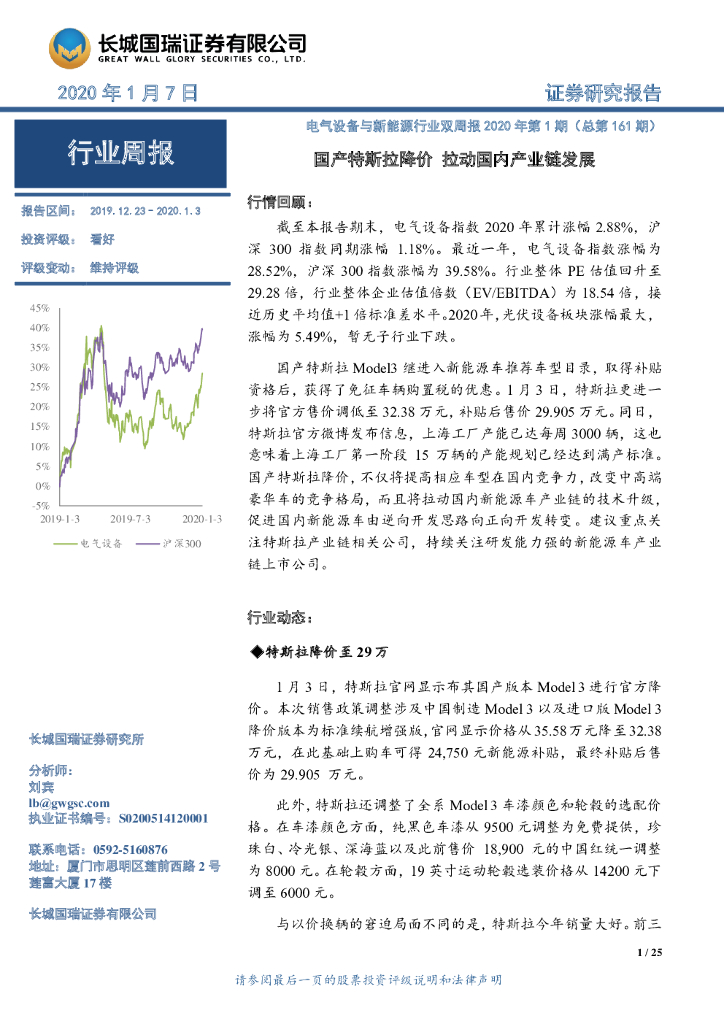 长城国瑞证券:电气设备与新能源行业双周报2020年第1期(总第161期):国产特斯拉降价 拉动国内产业链发展.pdf
