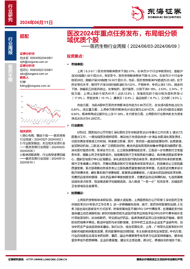 东海证券:医药生物行业周报:医改2024年重点任务发布,布局细分领域优质个股.pdf