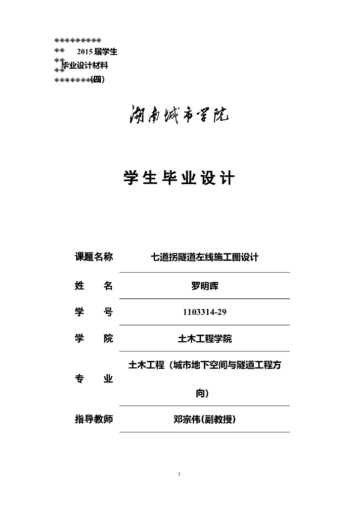 七道拐隧道左线施工图设计Word版(共125页).doc