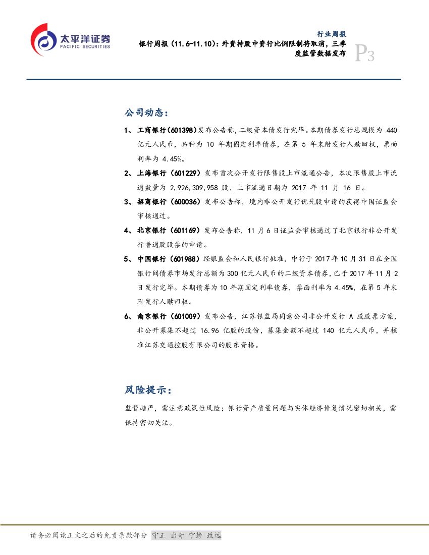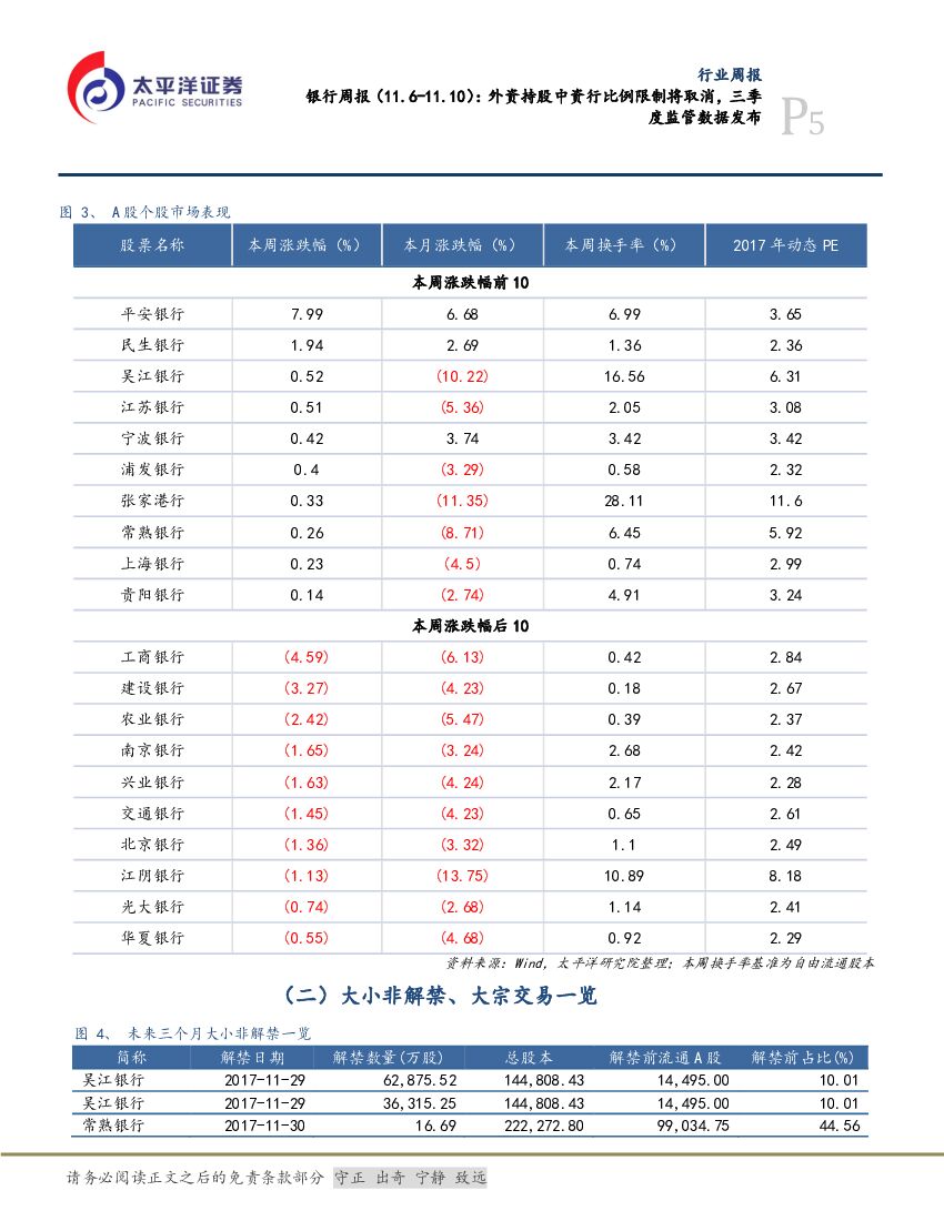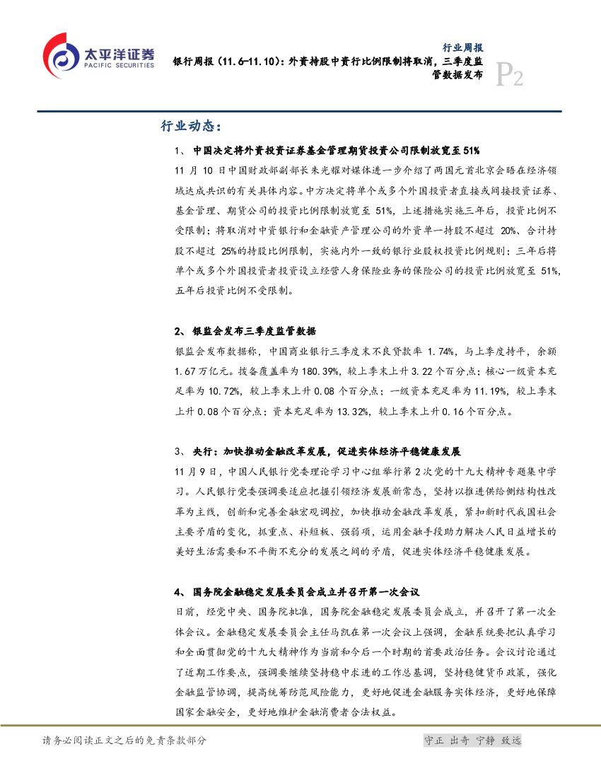 太平洋证券:银行周报:外资持股中资行比例限制将取消,三季度监管数据发布.pdf