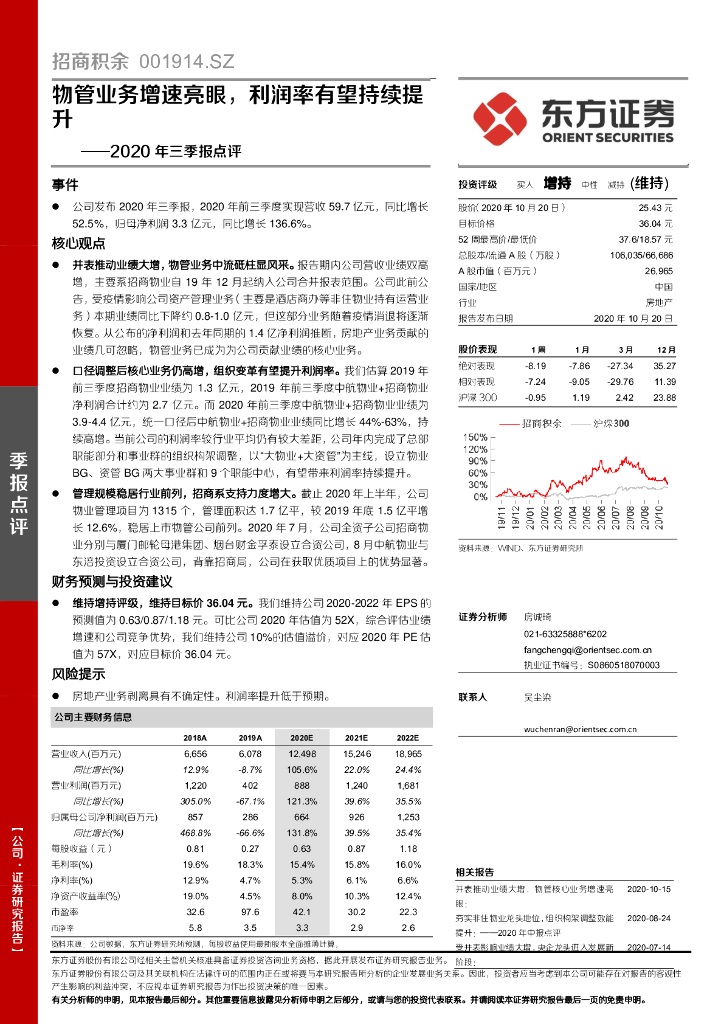 东方证券:招商积余(001914)-2020年三季报点评:物管业务增速亮眼,利润率有望持续提升.pdf