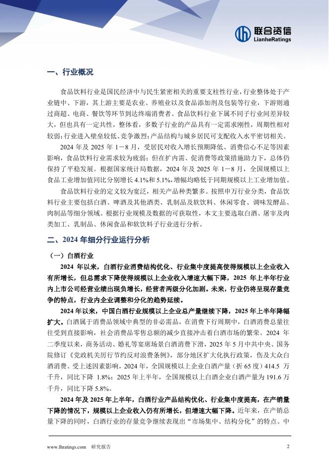 联合资信评估:食品饮料行业2025年信用风险研究.pdf