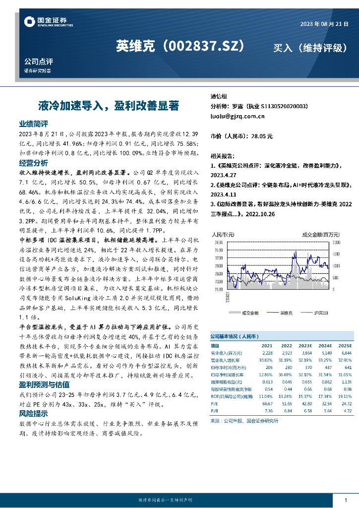 国金证券:英维克(002837)-液冷加速导入,盈利改善显著.pdf