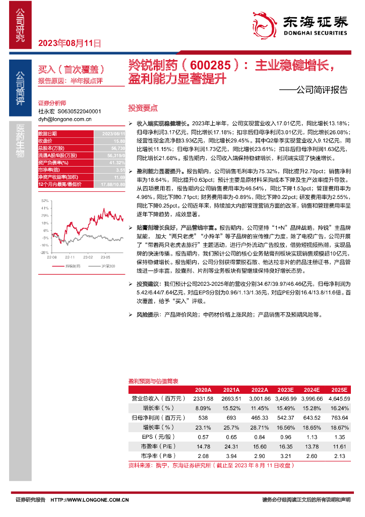 东海证券:羚锐制药(600285)-公司简评报告:主业稳健增长,盈利能力显著提升.pdf