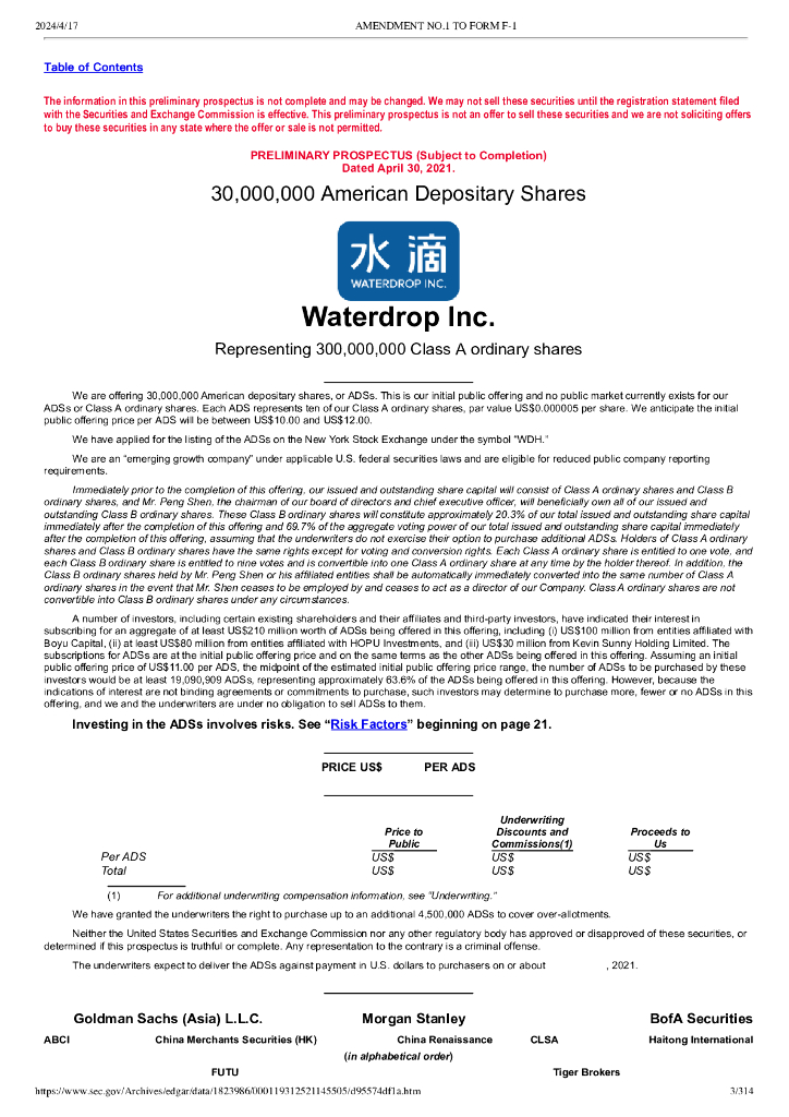 水滴筹WDH美股IPO上市招股说明书.pdf