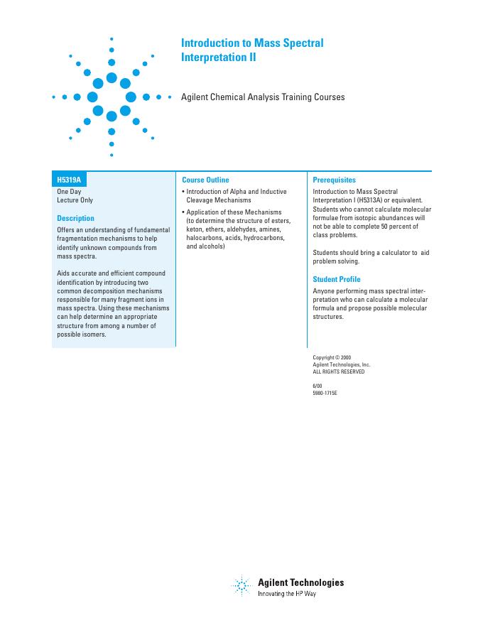Agilent Introduction to Mass Spectral Interpretation II (H5319A) 数据手册.pdf