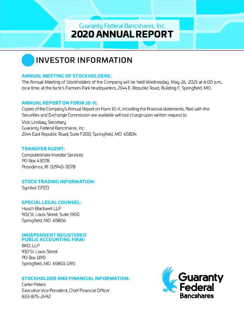 Guaranty Federal Bancshares, Inc.(GFED)2020财年年度报告(英文版).pdf