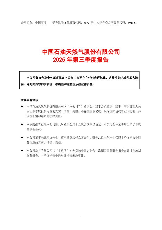 601857-中国石油:中国石油天然气股份有限公司2025年第三季度报告.pdf