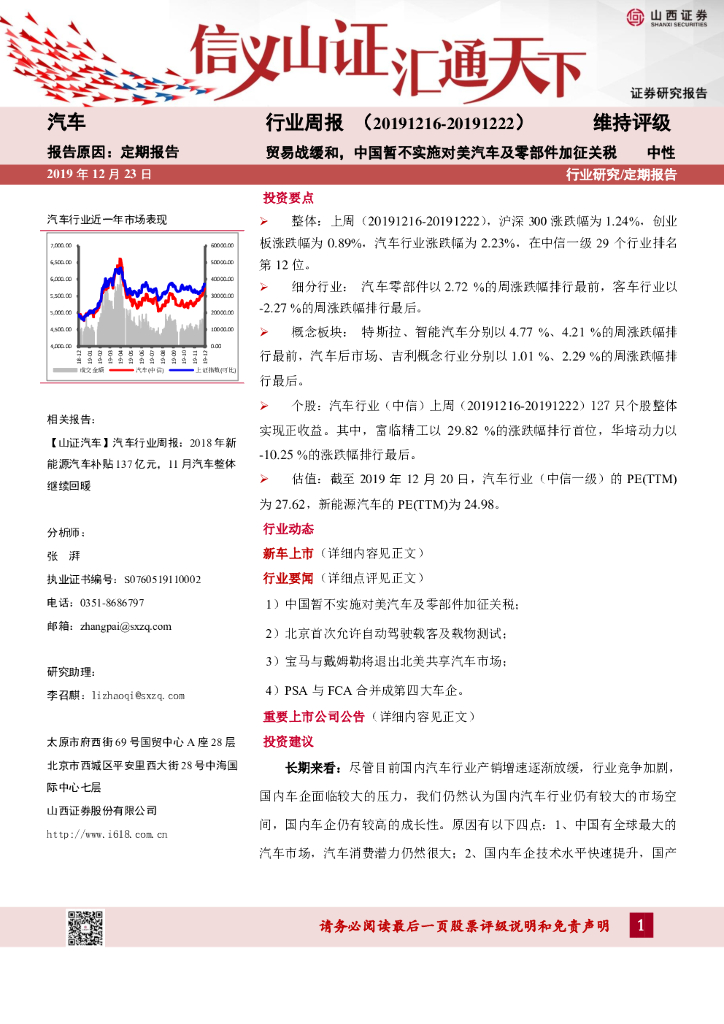 山西证券:汽车行业周报:贸易战缓和,中国暂不实施对美汽车及零部件加征关税.pdf