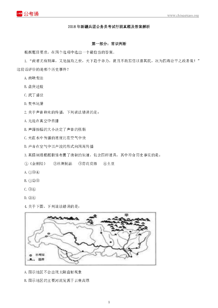 2018年新疆兵团公务员考试行测真题及答案.pdf
