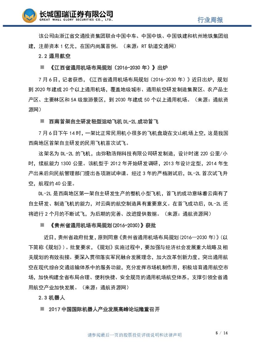 长城国瑞证券:机械设备行业周报2017年第26期(总第48期):江西发布通用机场布局规划,机器人高峰论坛召开.pdf