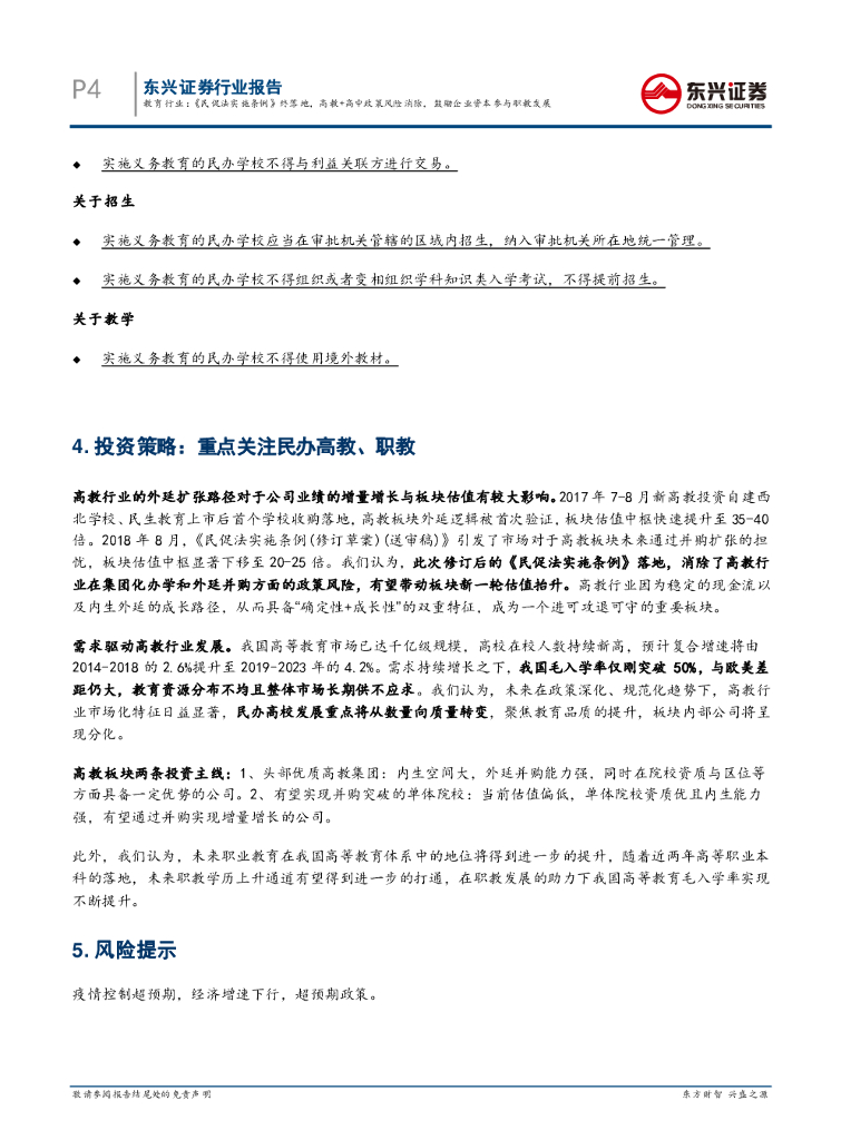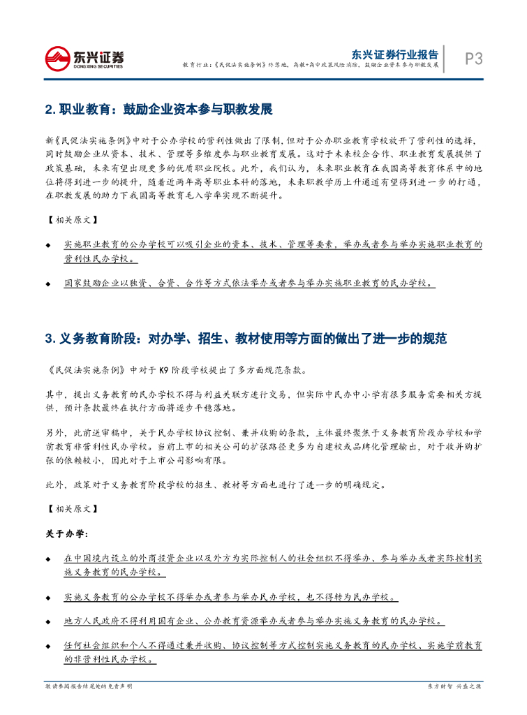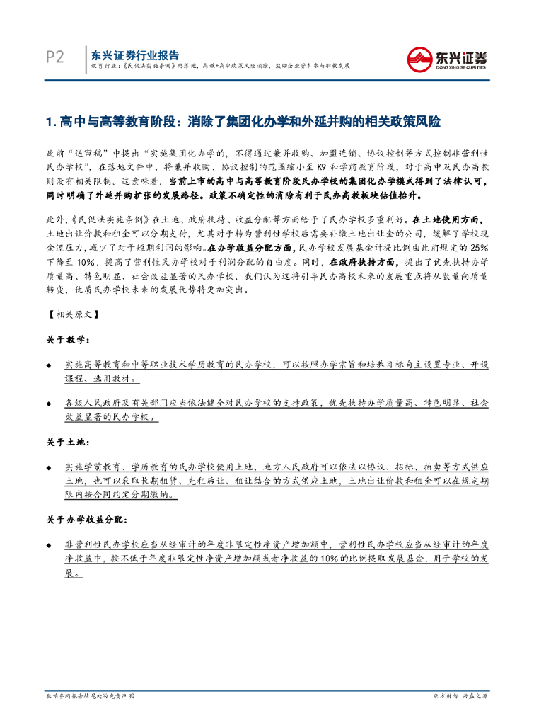 东兴证券:教育行业:《民促法实施条例》终落地,高教+高中政策风险消除,鼓励企业资本参与职教发展.pdf