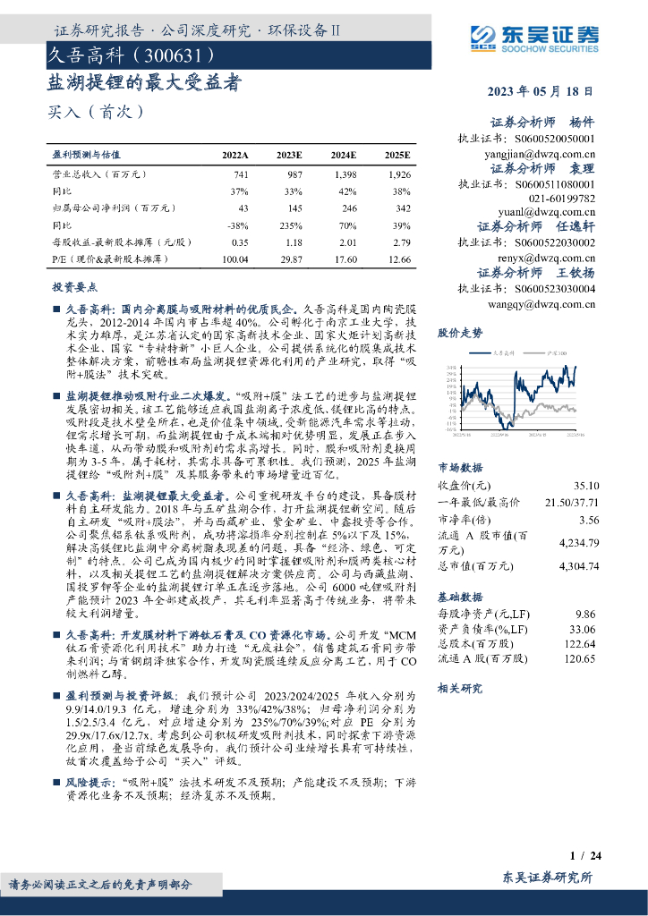 东吴证券:久吾高科(300631)-盐湖提锂的最大受益者.pdf