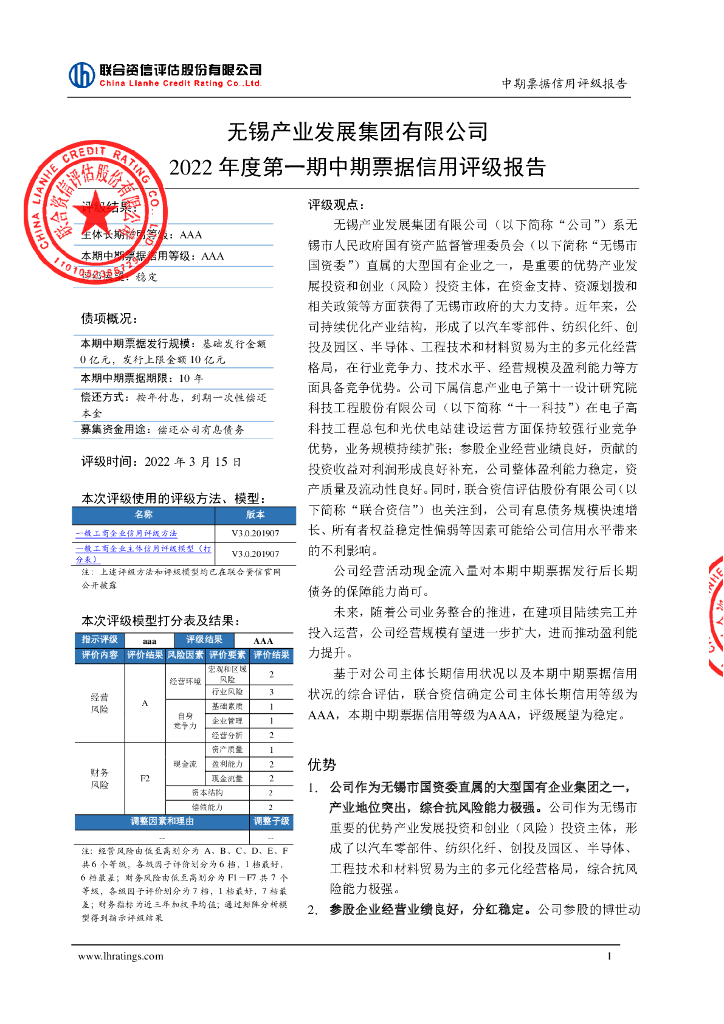 联合资信:无锡产业发展集团有限公司2022年度第一期中期票据信用评级报告.pdf