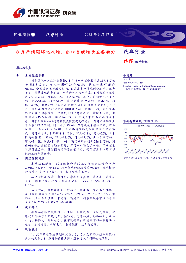 中国银河:汽车行业行业周报:8月产销同环比双增,出口贡献增长主要动力.pdf
