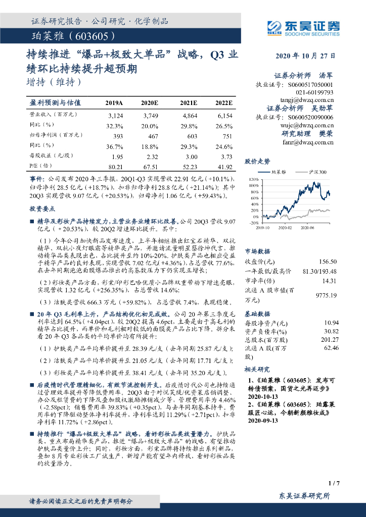 东吴证券:珀莱雅(603605)-持续推进“爆品+极致大单品”战略,Q3业绩环比持续提升超预期.pdf