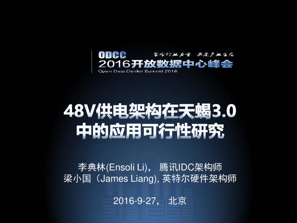 ODCC 2016开放数据中心峰会-48V供电架构在天蝎3.0中的应用和可行性研究.pdf