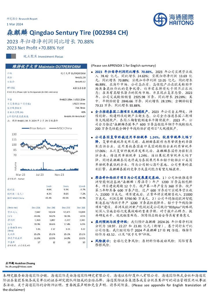 海通国际:森麒麟(002984)-2023年归母净利润同比增长70.88%.pdf