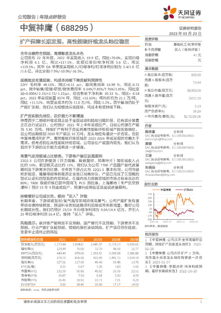天风证券:中复神鹰(688295)-扩产保障长期发展, 高性能碳纤维龙头地位稳固.pdf