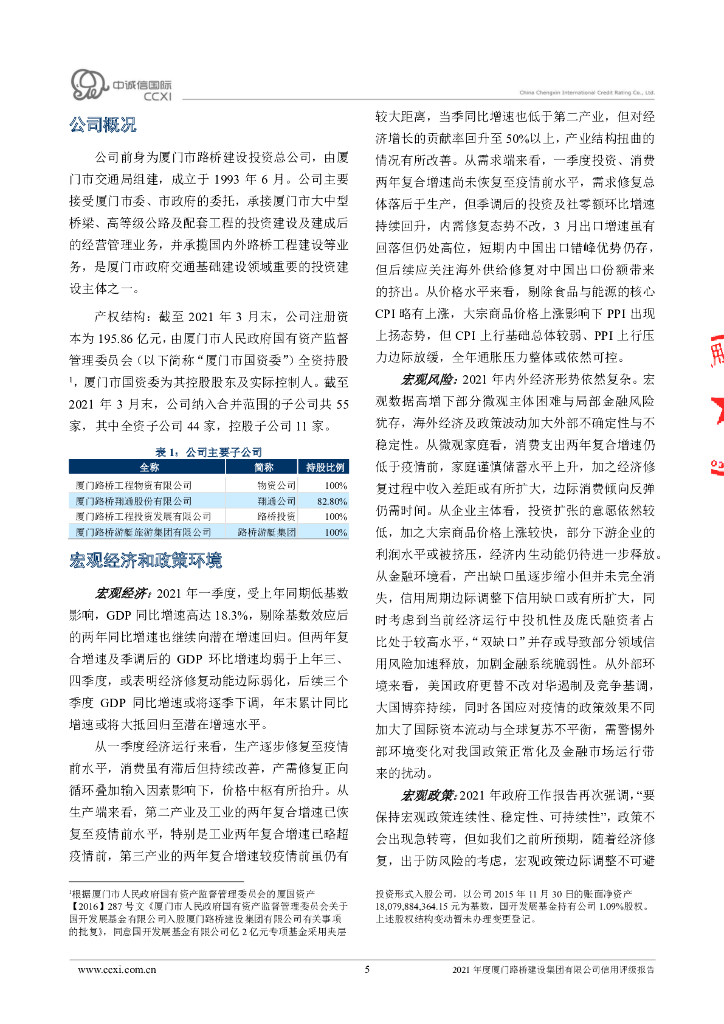 中诚信:厦门路桥建设集团有限公司主体信用评级报告及跟踪评级安排.pdf