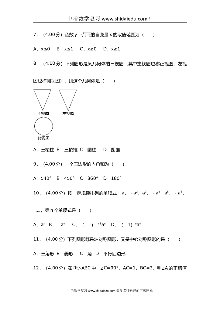 云南中考数学试题答案【版】.doc
