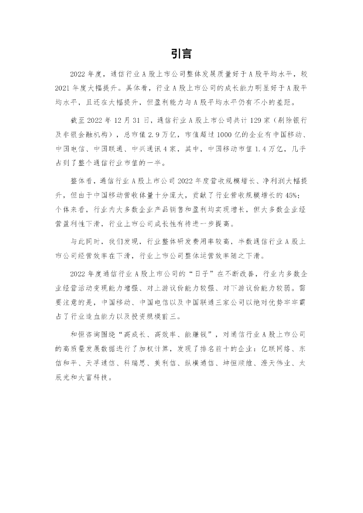 和恒咨询:通信行业A股上市公司高质量发展报告(2022年报).pdf