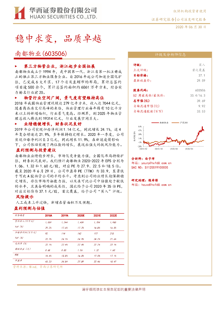 华西证券:南都物业(603506)-稳中求变,品质卓越.pdf